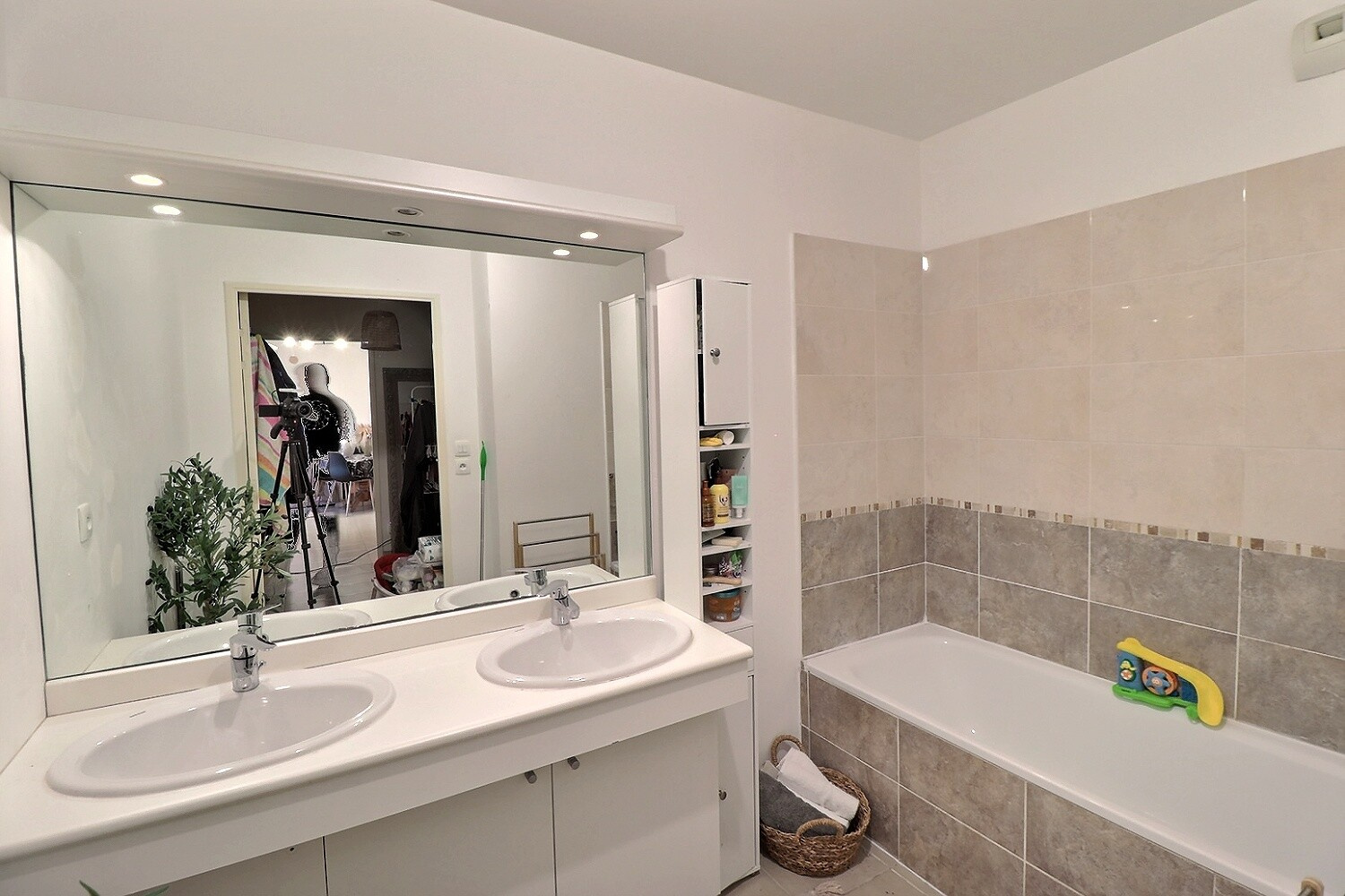 Côté nuit, vous découvrirez deux chambres aux volumes confortables (environ 9 m² et 12 m²), une salle de bains spacieuse avec baignoire et double vasque, ainsi que des WC séparés.